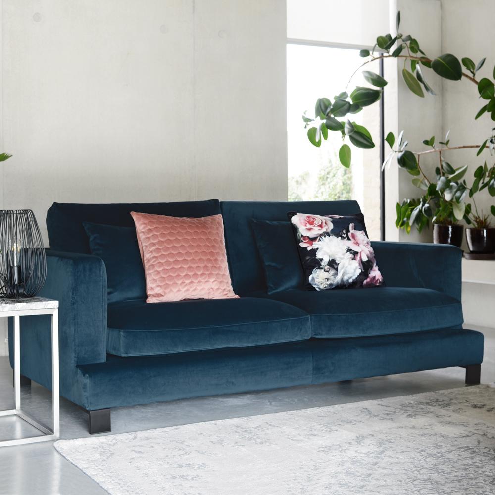 Lugano Three Seater Sofa Blue Velvet Dwell Fixer Upper Living Room Sofa