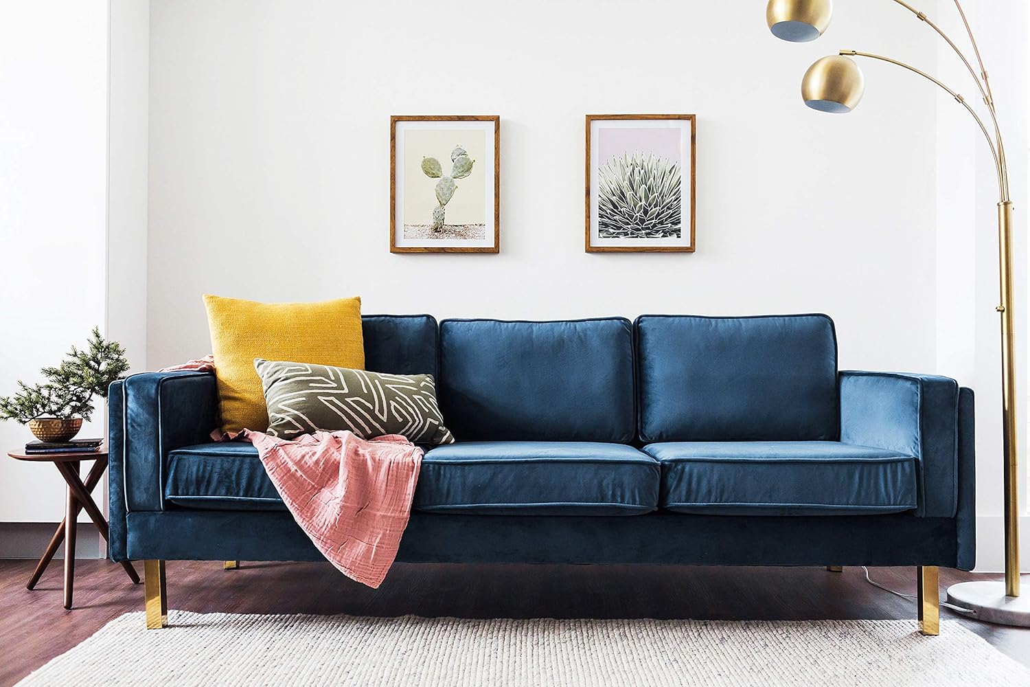 Edloe Finch Midcentury Modern Lexington Blue Velvet Sofa 87 Amazon In Home Kitchen Fixer Upper Living Room Sofa