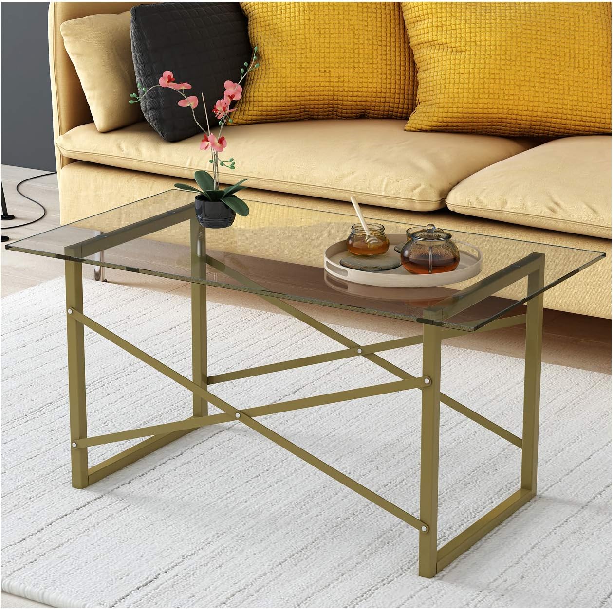 - Amazon Com Premium Tempered Glass Coffee Table Small Modern Coffee Table For Living Room Match Well With Rug 40x20x14 Kitchen Dining