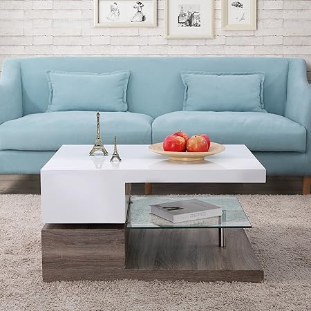 Mecor Swivel Coffee Table Design Coffee Table With Glass Living Room Furniture Walnut Amazon Co Uk Kitchen Home Black And Gold Living Room Furniture