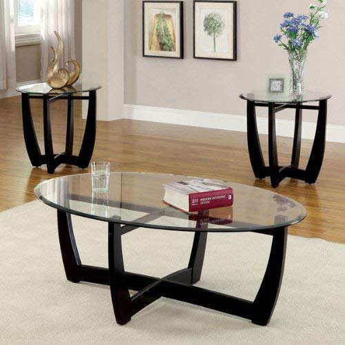 - Cappuccino Finish Base Glass Top Modern 3pc Coffee Table Set