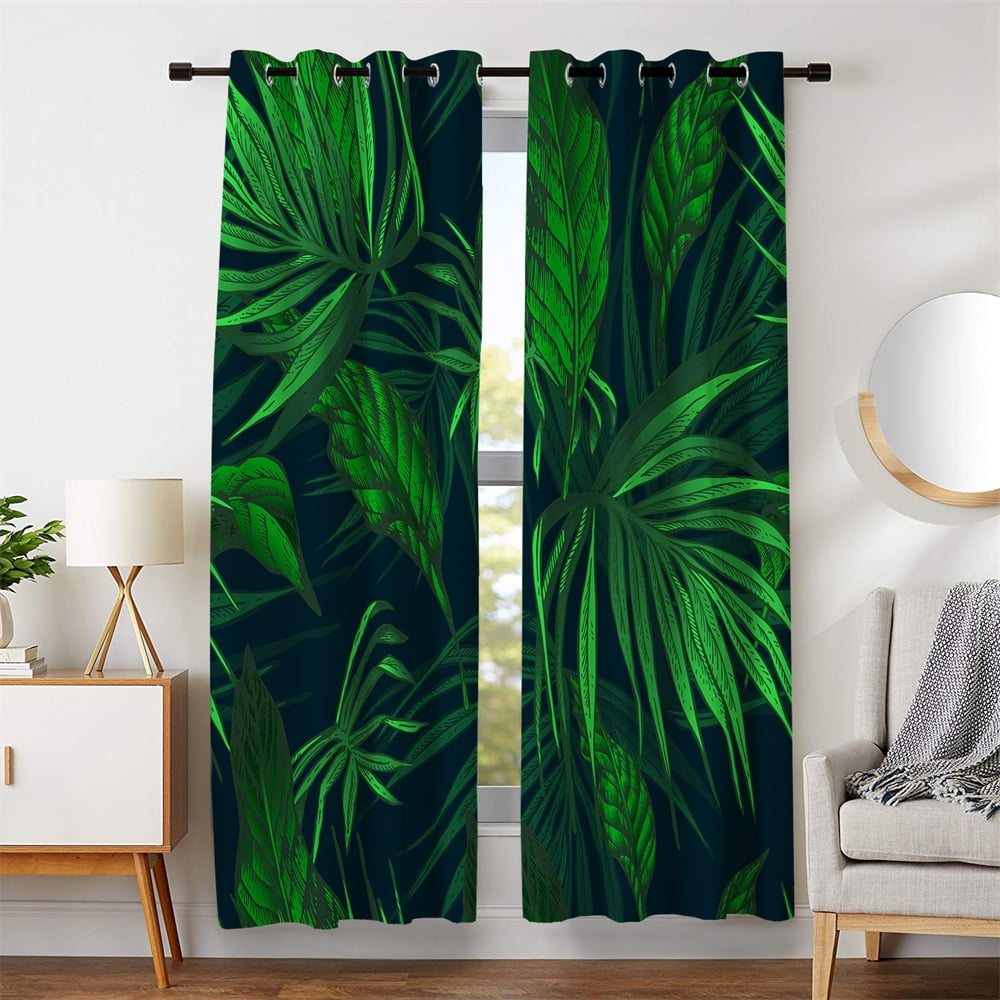 106 W X 63 L Room Decor Window Curtains Green Plants Leaves Blackout For Living Room Bedroom Drapes 2 Panels Set With Grommets Block Out Light Cold 53 X 63 Inches Long Each Face To Face Sofa Living Room