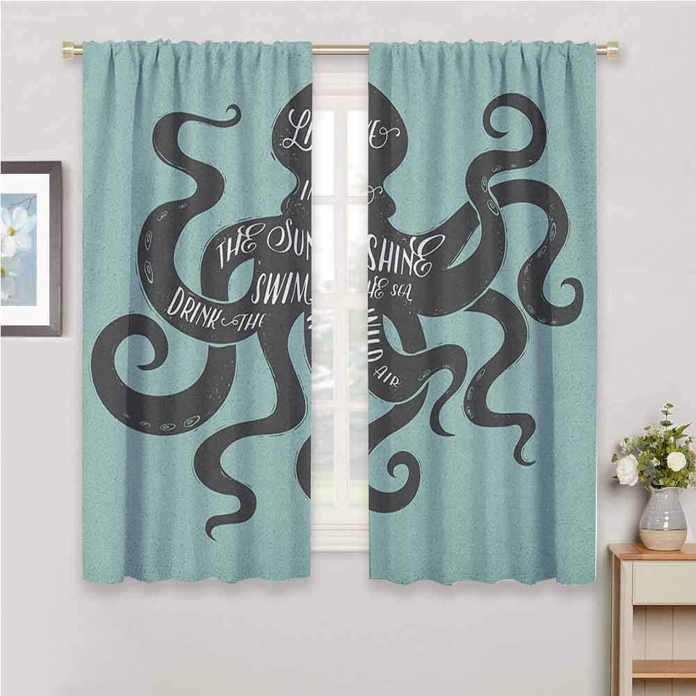 Octopus Eclipse Blackout Curtains Live In The Sunshine Swim The Sea Drink The Wild Air Message Graphic Patio Door Curtains Living Room Decor W72 X L84 Inch Charcoal Grey Turquoise Amazon Co Uk Kitchen Minimalist Warm Modern Living Room