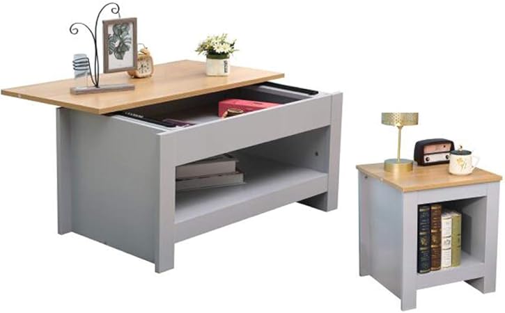 Cf Furniture Living Room 2 Piece Set Lamp Table Sliding Top Coffee Table Free Standing Storage Cabinet Modern Simple Practical Grey Oak Amazon Co Uk Kitchen Home Living Room Table Adjustable Height