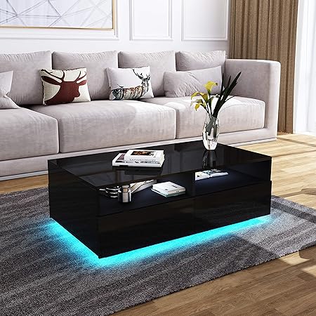 Modern Rgb Led Light Coffee Tea Table With Storage Drawers Shelvs High Gloss Living Room Furniture Black 4 Drawers 85 56 35cm Amazon Co Uk Kitchen Home Zebra Print Living Room Decor