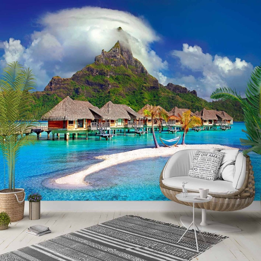 Else Blue Tropical Sea Green Island Houses 3d Photo Mural Home Decor Living Room Bedroom Background Wallpaper Shopee Malaysia Kerala Living Room Design