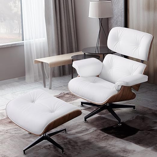 Amazon Com Mecor Lounge Chair With Ottoman Mid Century Palisander Chair 100 Grain Italian Leather Living Room Recliner With Heavy Duty Base Support White Kitchen Dining Macys Living Room Furniture