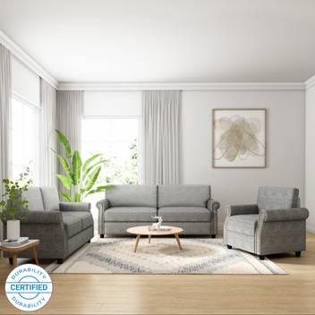 Grey is a perfect neutral. Classic gray sofa design. On the lower part of the area there is also a fluffy ash grey rug making the space has even more grey tones.