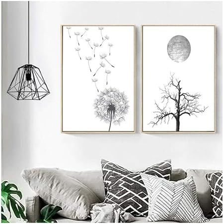 Jhct Black White Posters And Prints Watercolour Wall Art Canvas Painting Dandelion Nordic Poster Pictures For Living Room Home Decor 50x70cmx2 Pcs No Frame Wall Art Amazon Co Uk Kitchen Home Grey And Cream Living Room Decor