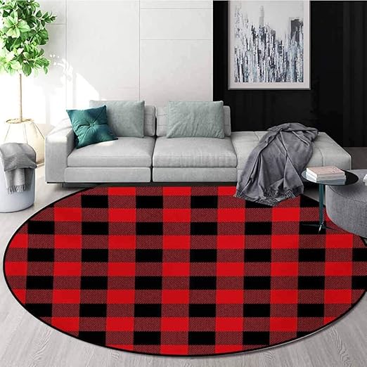 Plaid Round Area Rugs Living Room Lumberjack Fashion Buffalo Style Checks Pattern Retro Style With Grid Composition Study Computer Chair Cushion Base Mat Round Carpet Round 31 Inch Amazon Ca Home Kitchen Living Room Design Sectional