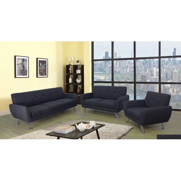 Udesign Furnishing Midnight Gray Linen 3pc Living Room Set Sofa Loveseat Chair Walmart Com Walmart Com Extra Deep Couches Living Room Furniture