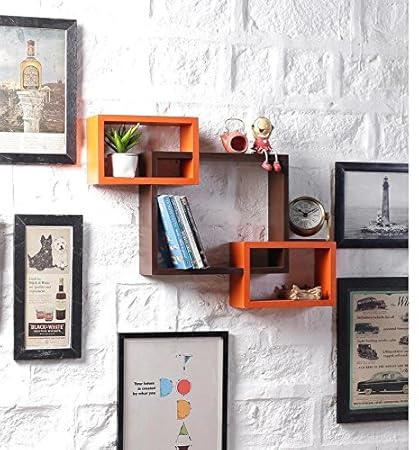 Amaze Shoppee Wooden Wall Mounted Shelf Rack For Living Room Decor Set Of 3 Brown Orange Amazon In Home Kitchen Living Room Design For Flat