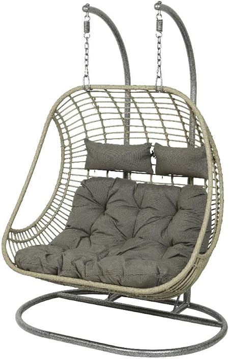 Dawsons Living Vienna Hanging Double Egg Chair Outdoor And Indoor Rattan Weave Swing Hammock With Hanging Stand Grey Amazon Co Uk Garden Outdoors Living Room Small Interior Design Styles