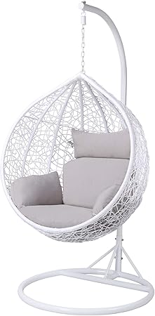 - Yaheetech Rattan Swing Chair Wicker Weave Hanging Egg Chair Indoor Or Outdoor With Cushion And Cover Stand For Living Room Garden Patio White Amazon Co Uk Kitchen Home