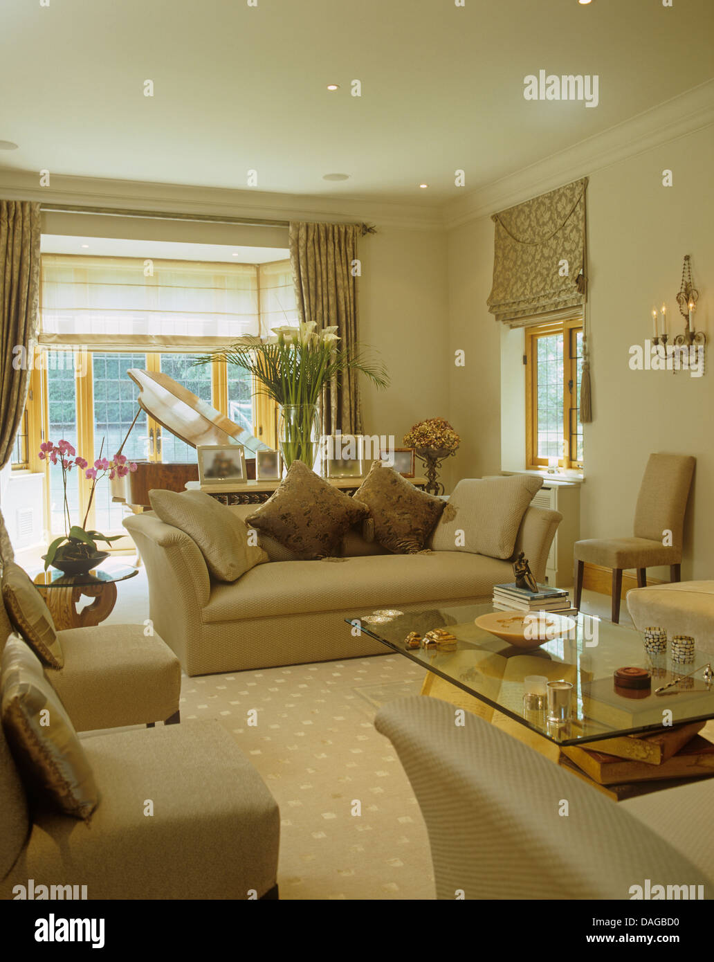 - Glass Coffee Table And Beige Sofa And Chairs In Living Room With Stock Photo Alamy Living Room Design Wallpaper,