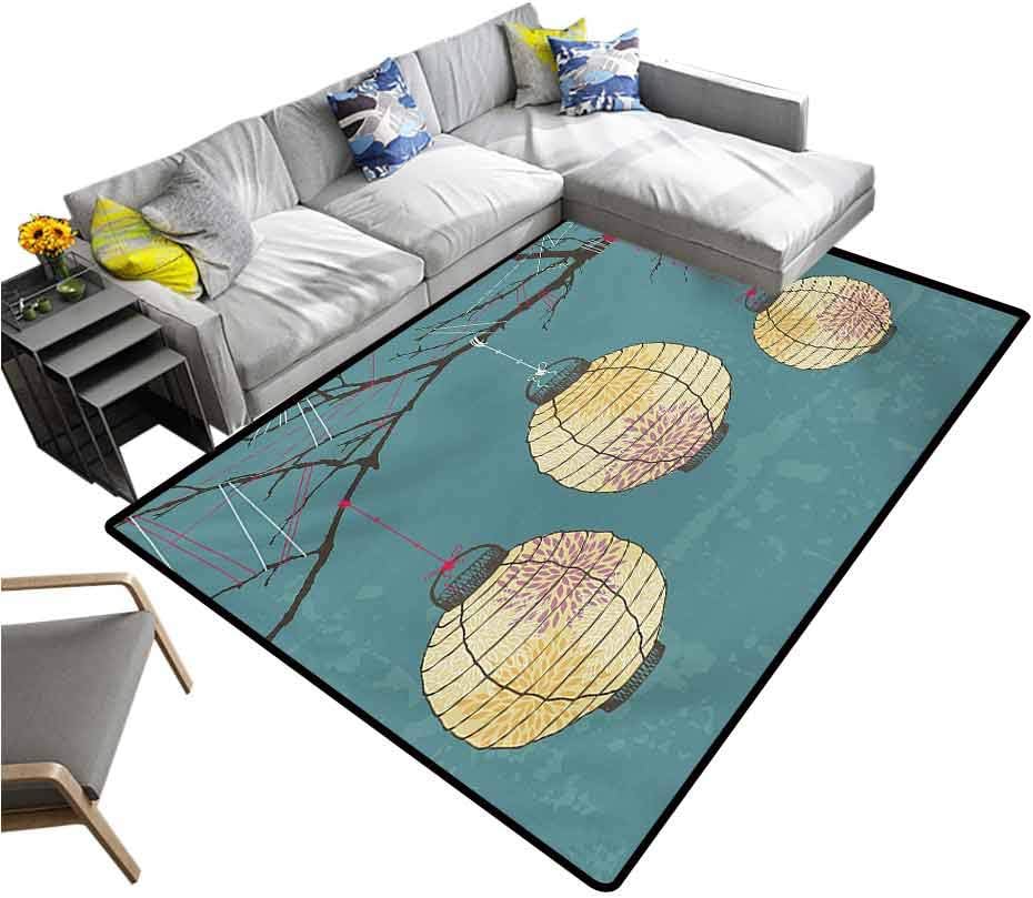 Amazon Com Lantern Living Room Floor Carpets Three Paper Lanterns Hanging On Branches Lighting Fixture Source Lamp Boho Carpet For Home Decor Teal Pale Yellow 4 X6 Kitchen Dining Rustic Interior Design Ideas Living Room