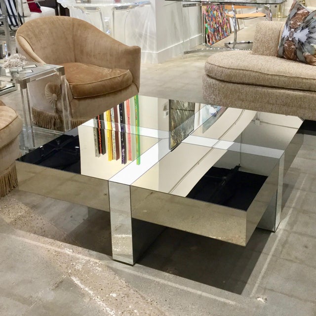 1970s Mirrored Coffee Table Chairish Simple Living Room Design Drawing