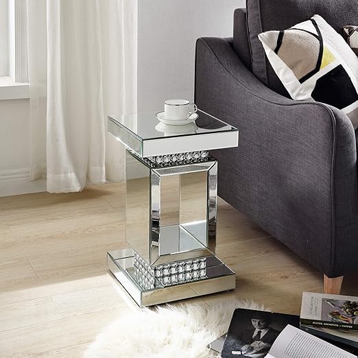- Amazon Com Mirrored End Table Modern Designed Crystal Diamond Side Table Accent Table Silver Mirror For Living Room Bedroom From Mireo Fine Furniture Kitchen Dining