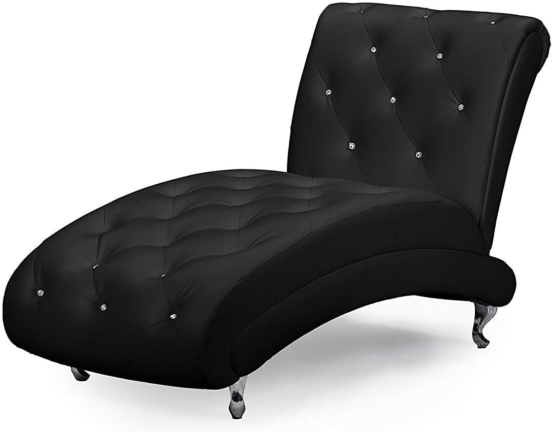 - Amazon Com Indoor Chaise Lounge Chair Modern Oversized Button Tufted Faux Leather Living Room Lounger Black Kitchen Dining