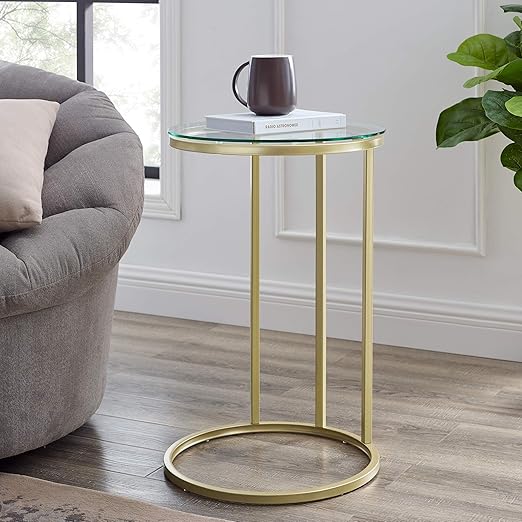Amazon Com Walker Edison Modern Round Side Accent Living Room Storage Small End Table 16 Inch Glass Gold Furniture Decor Flexsteel Living Room Furniture Sets