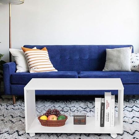 Greensen Coffee Table Living Room Rectangle Tea End Modern Sofa Side Coffee Table With Wheels White Table Wood Table For For Living Room Home Office Furniture 80 X 40 X 43 7 Cm Modern And Sleek Living Room Designs