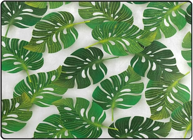 Ffy Go Area Rug Green Tropical Leaf Print Carpet Large Non Slip For Living Room Hall Dinner Table Home Decor 48 X 63 Inch Amazon Co Uk Kitchen Home Blue Living Room Furniture
