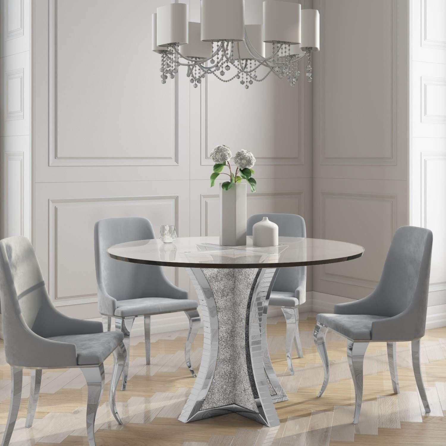 Jade Boutique Round Mirrored Dining Table With 4 Chairs In Grey Velvet Amazon Co Uk Kitchen Home Living Room Storage Chest