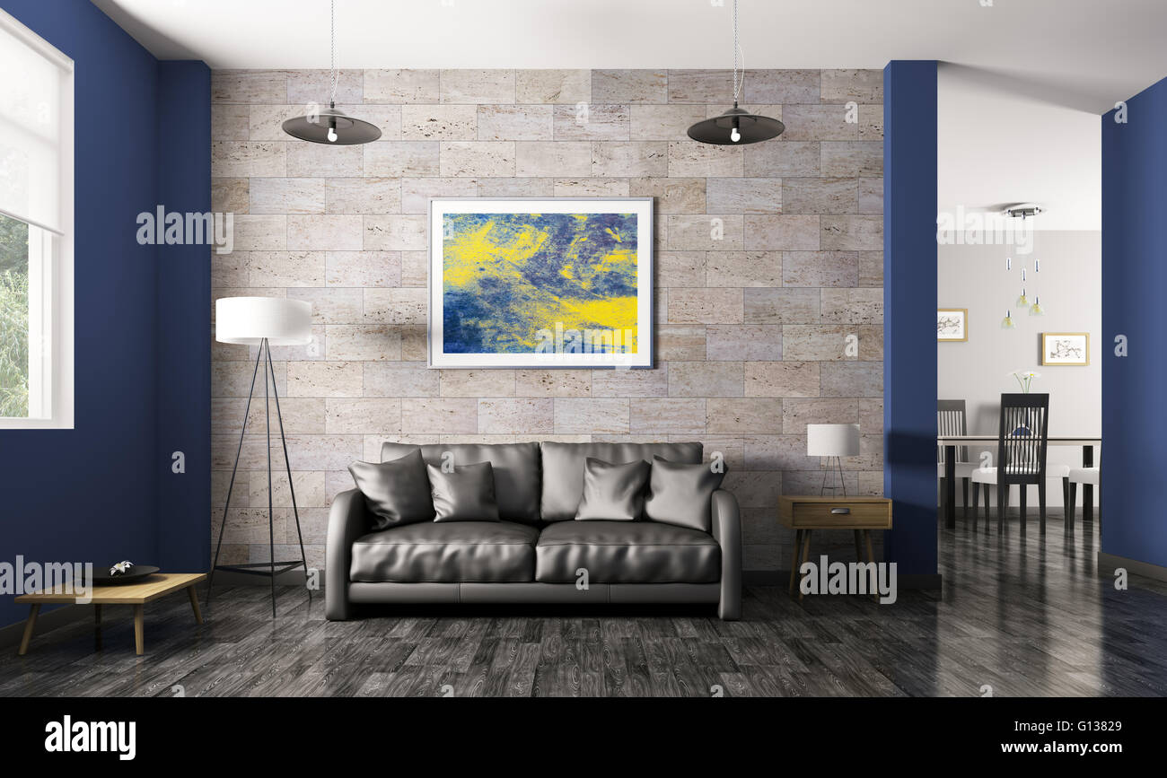 Modern Living Room Interior With Black Leather Sofa 3d Rendering Stock Photo 103949057 Alamy Living Room Native American Home Decor