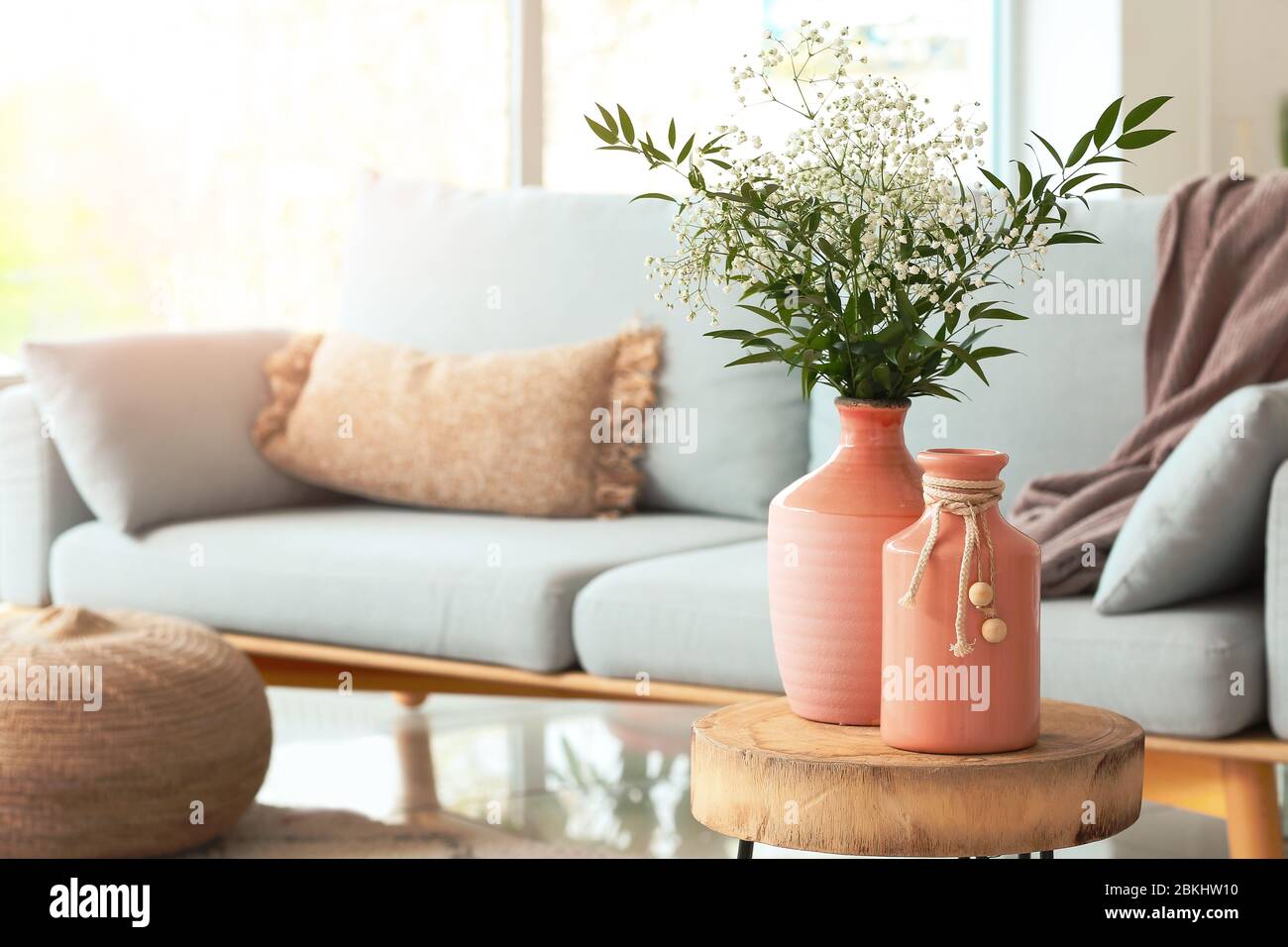 Vases With Flowers In Modern Living Room Stock Photo Alamy Home Living Room Ideas