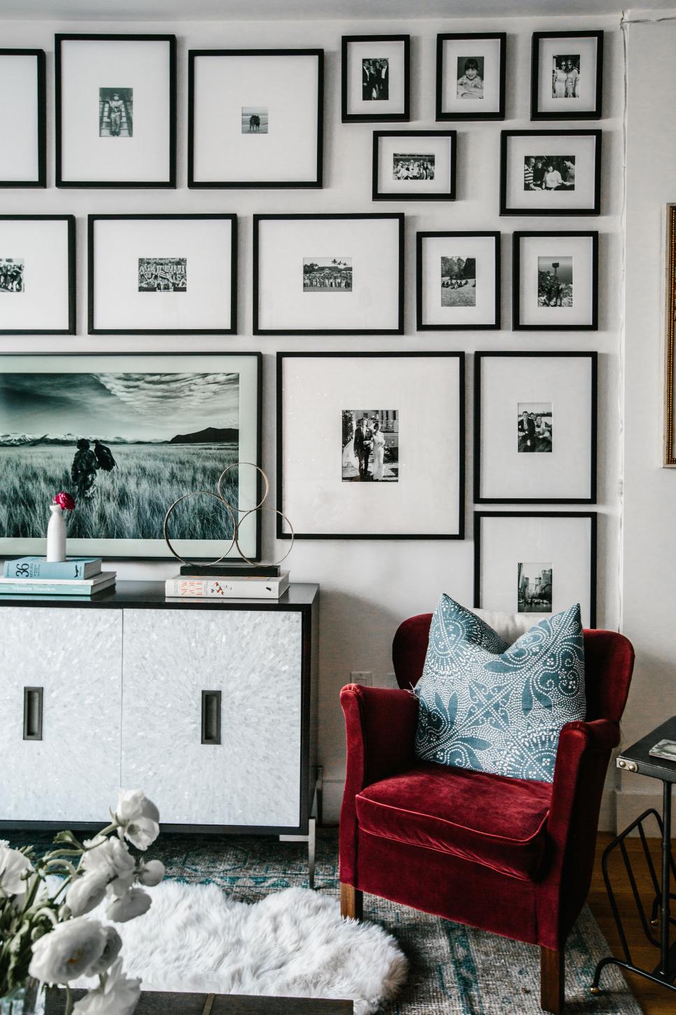 Modern Living Room With Black And White Photo Gallery Wall Hgtv Black White Grey Living Room Design