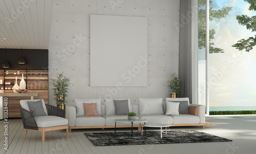 Modern Mediterranean Living Room Interior Design And Concrete Wall Background And Sea View Buy This Stock Illustration And Explore Similar Illustrations At Adobe Stock Adobe Stock Living Room Ideas India