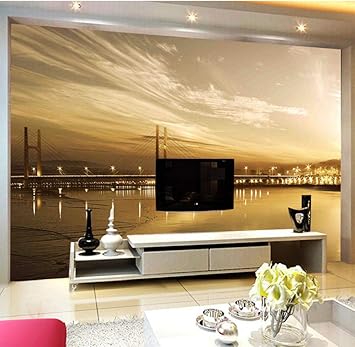 Murals Custom Poster Photo Wallpaper For Living Room Sofa Tv Background Modern Hd City Night Bridge Large Wallpaper Home Decor Amazon Co Uk Diy Tools Living Room Decor Buy Online