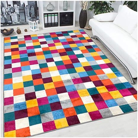 Modern Style Rugs Orange Blue Pink Teal White Yellow Grey Purple Multi Colour Checkered Blocks Designer Soft Touch Home Floor Rug 160x230cm Amazon Co Uk Kitchen Home Modern Living Area Interior Design