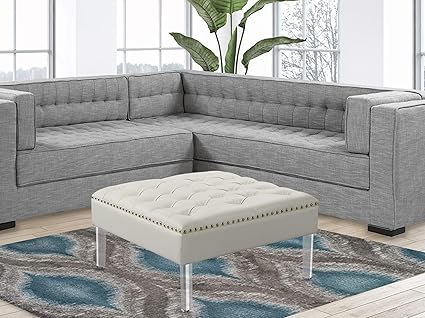Iconic Home Pierre Square Ottoman Center Table Button Tufted Pu Leather Upholstered Acrylic Legs Modern Transitional White Amazon In Home Kitchen Living Room Interior Designs Kerala