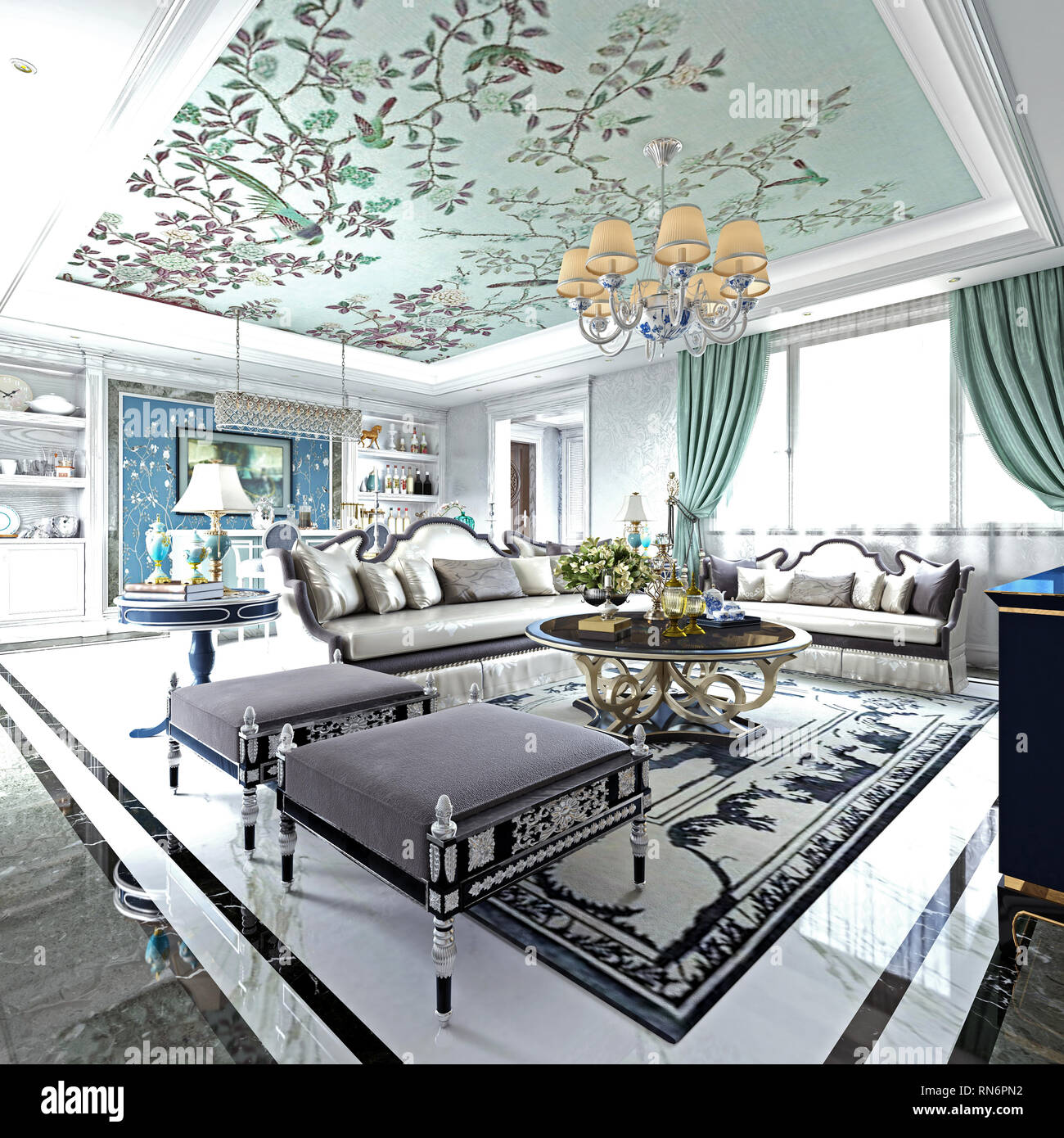 3d Render Post Modern Living Room Stock Photo Alamy White And Grey Living Room Decor