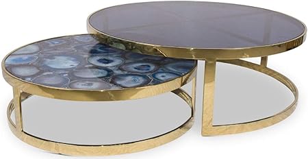 Casa Padrino Coffee Table Set Blue Gold 2 Round Living Room Tables With Agate Gemstone And Glass Top Quality Living Room Furniture Amazon Co Uk Kitchen Home Smart Living Room Storage Ideas