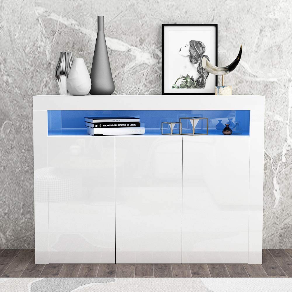 - Apelila High Gloss Sideboard Storage Cabinet Tall Display Cabinet For Living Room Dining Room White Cabinets