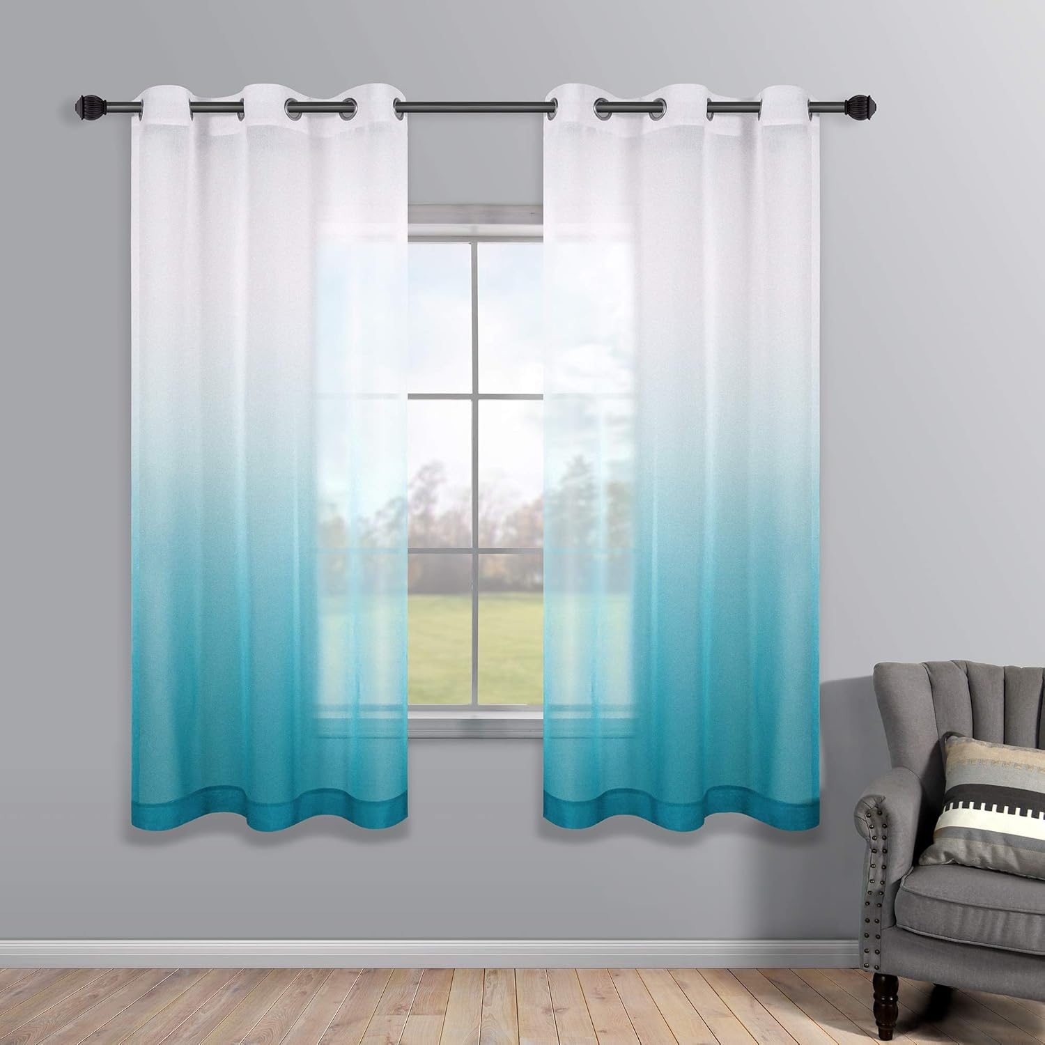 Amazon Com Teal Curtains 63 Inch Length For Bedroom Set Of 2 Panels Grommet Faux Linen Semi Voile Window Drapes Ombre Sheer Divider Curtains For Living Room Decor Girls Decorations 42 Wide 42x63 Latest Wall Paint Design For Living Room