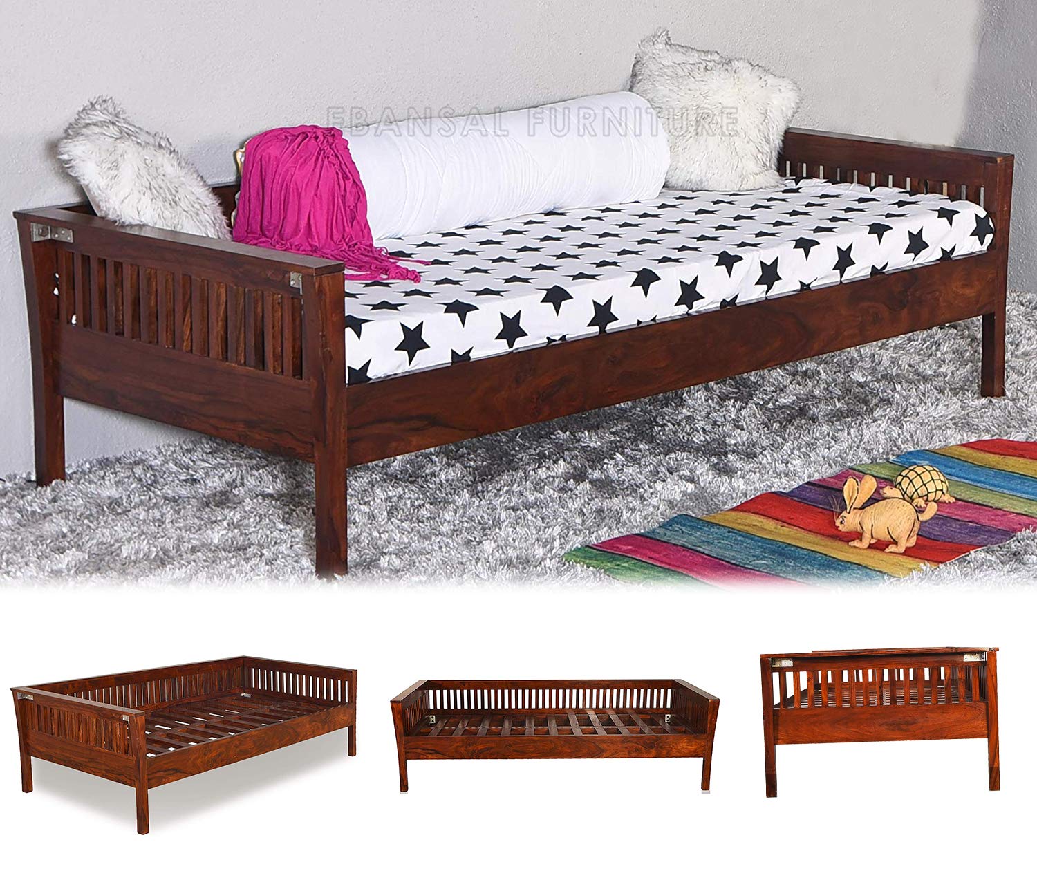 Woodlab Furniture Sheesham Wood 3 Seater Sofa Cum Divan Bed For Living Room Brown Amazon In Home Kitchen Small Victorian Living Room Design
