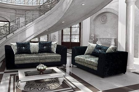 Belle Dior Crushed Velvet Sofa Range 3 2 Seater Set Black Silver Amazon Co Uk Kitchen Home Latest Living Room Decor Ideas