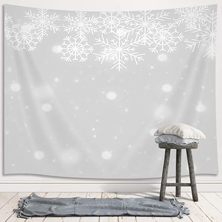 Dynh Christmas Background Tapestry Wall Hanging Winter White Silver Snowflake Xmas Premium Home Art Wall Decor Upgrade Tapestries For Bedroom Living Room College Dorm 71x60 Inches Amazon Co Uk Welcome Does A Living Room Need A Coffee Table