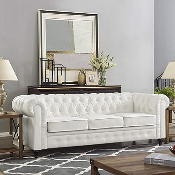 Amazon Com Naomi Home Emery Chesterfield Sofa With Rolled Arms Tufted Cushions White Furniture Decor Split Level Living Room Furniture Placement